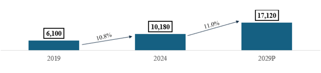 - Overall Market Growth: The Indian packaged food market was valued at ₹10,180 billion in Fiscal 2024. It has shown a strong CAGR of 10.8% since Fiscal 2019 and is projected to expand significantly to ₹17,120 billion by Fiscal 2029, reflecting an expected CAGR of 11.0%.