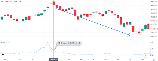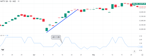 If the Nifty moves higher but the ADR continues to fall, fewer stocks are participating. This hidden divergence can signal that the rally may not last.