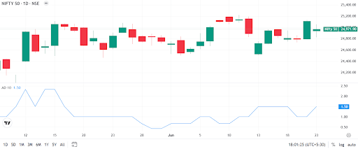 Traders use the advance/decline ratio to double-check what the index is showing. It’s often combined with other tools, such as moving averages, volume, and trendlines, to gain a clearer market picture. Many intraday and swing traders closely monitor the ratio to identify hidden strengths or weaknesses.