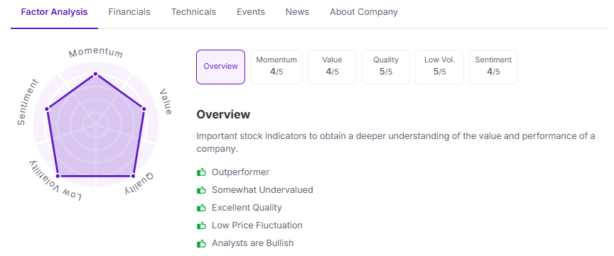Let’s take a look at its Factor Analysis: