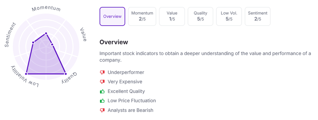 This stock has given multibagger returns of over 110% in the last three years. Let’s take a look at its Factor Analysis scores: