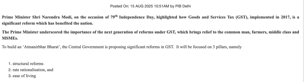 Remember this August 15th, when you were probably celebrating Independence Day, India’s Prime Minister announced that India would get a “Diwali gift” – a massive overhaul of our GST system.