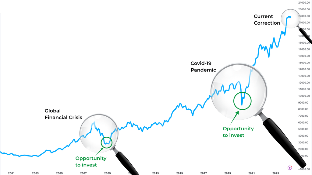 - With a long horizon, corrections become less concerning. You can potentially use them to accumulate shares of quality companies at a discount, aiming to benefit from their long-term growth.