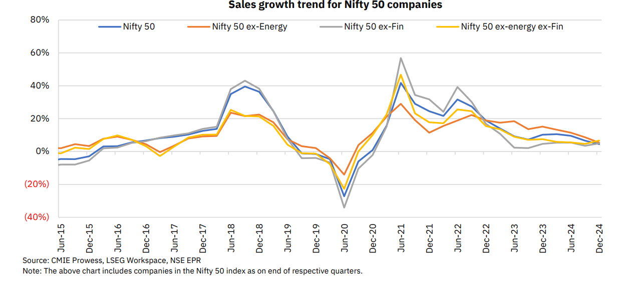 For months, the Nifty 50 companies have been hitting the brakes on revenue growth, slowing down quarter after quarter. It’s been a tough ride, with numbers slipping to their lowest in four years.