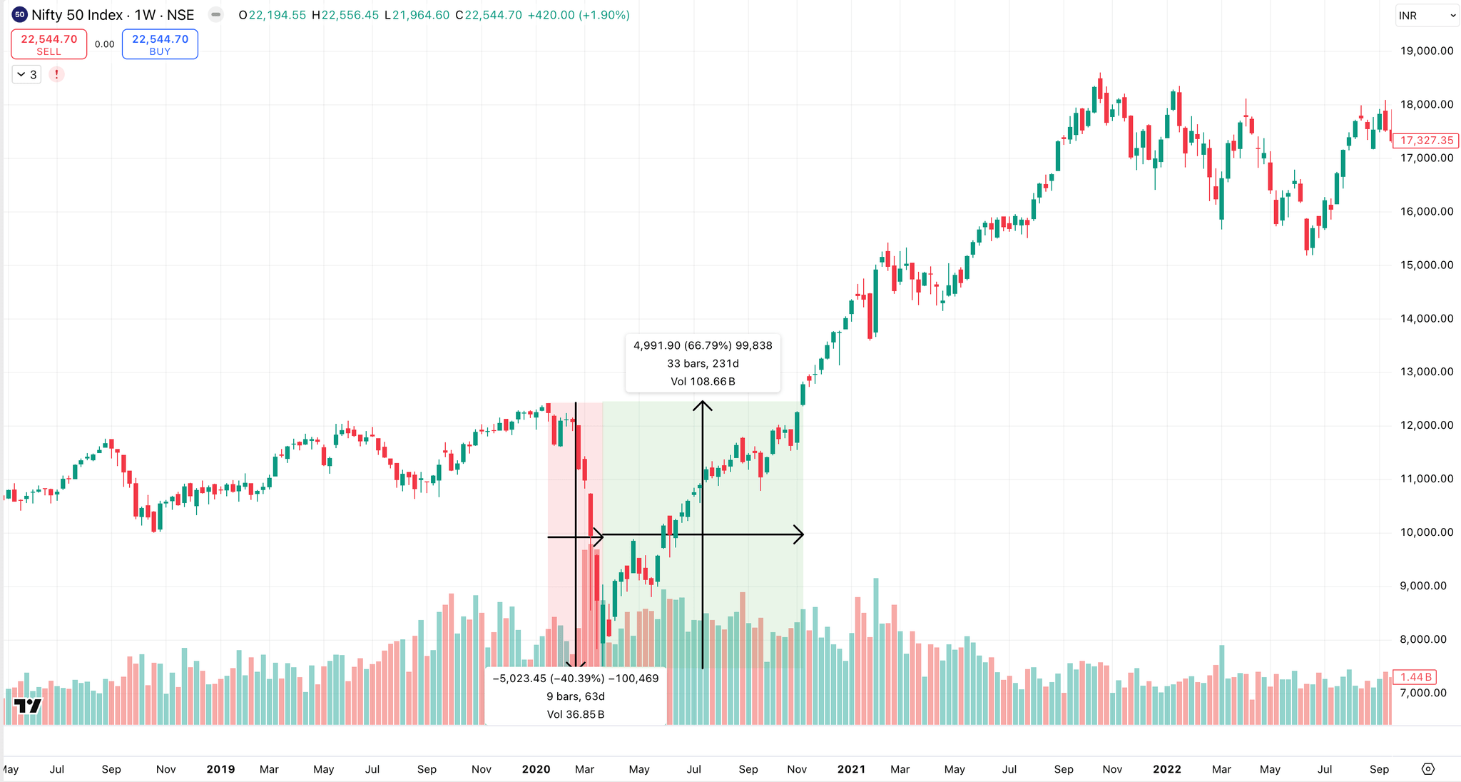 Nifty 50 crashed 40% in March 2020 – one of its steepest falls ever.