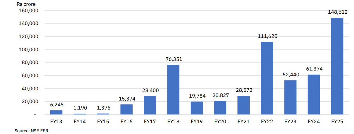 From FY24 to FY25, investments in mainboard IPOs have surged significantly. Midcap and Smallcap investments have also seen a notable rise.