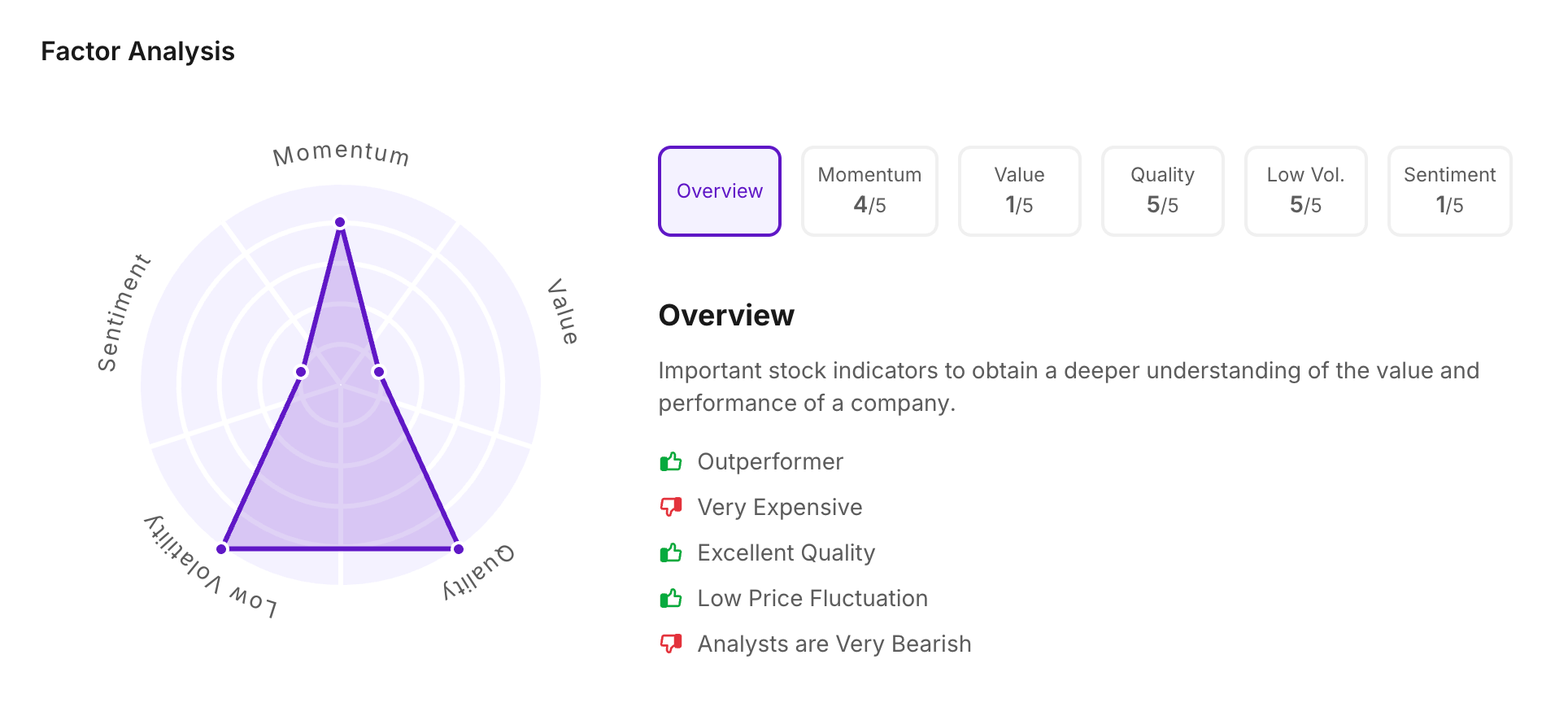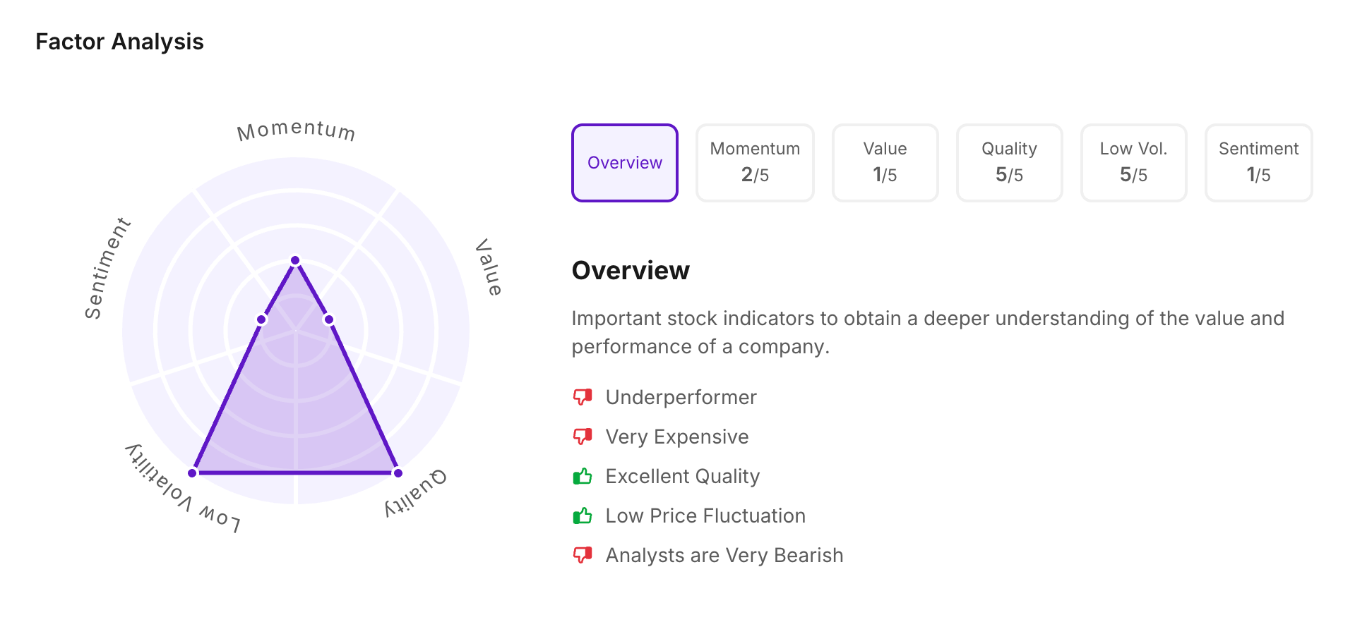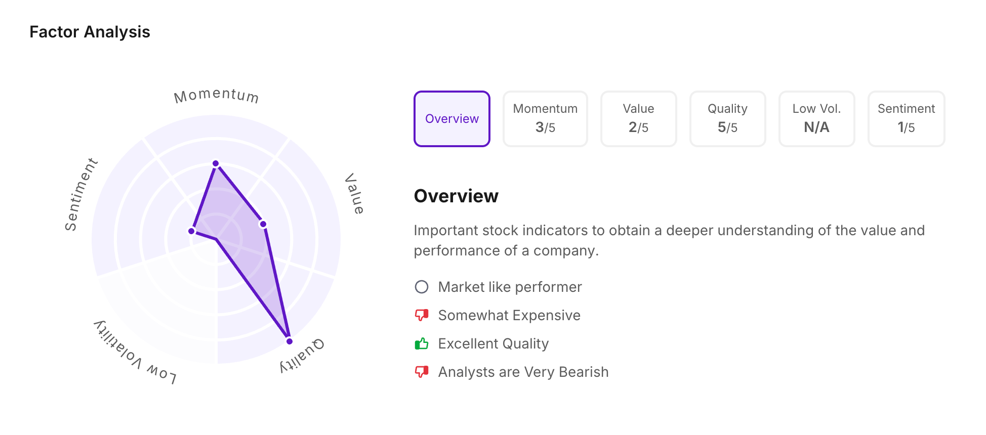 Let’s take a look at its Factor Analysis scores: