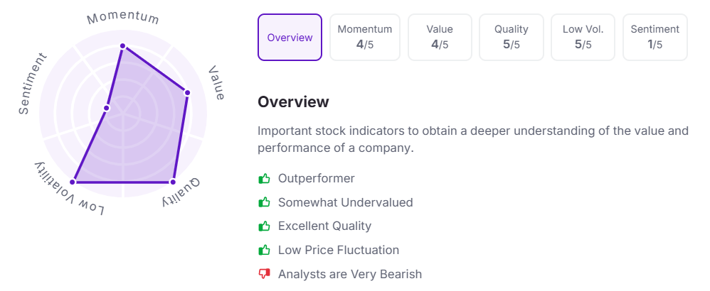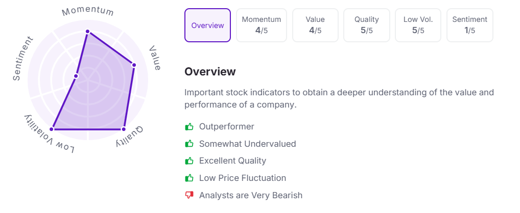 Let’s take a look at its Factor Analysis scores: