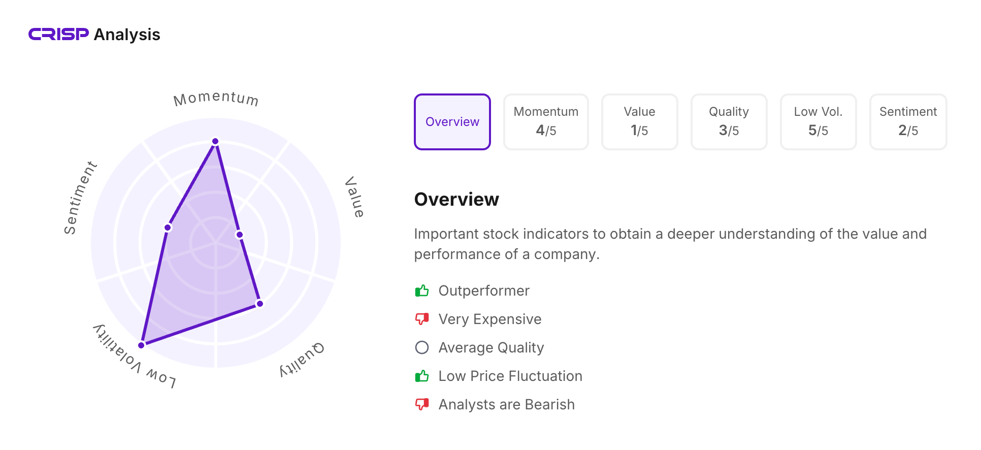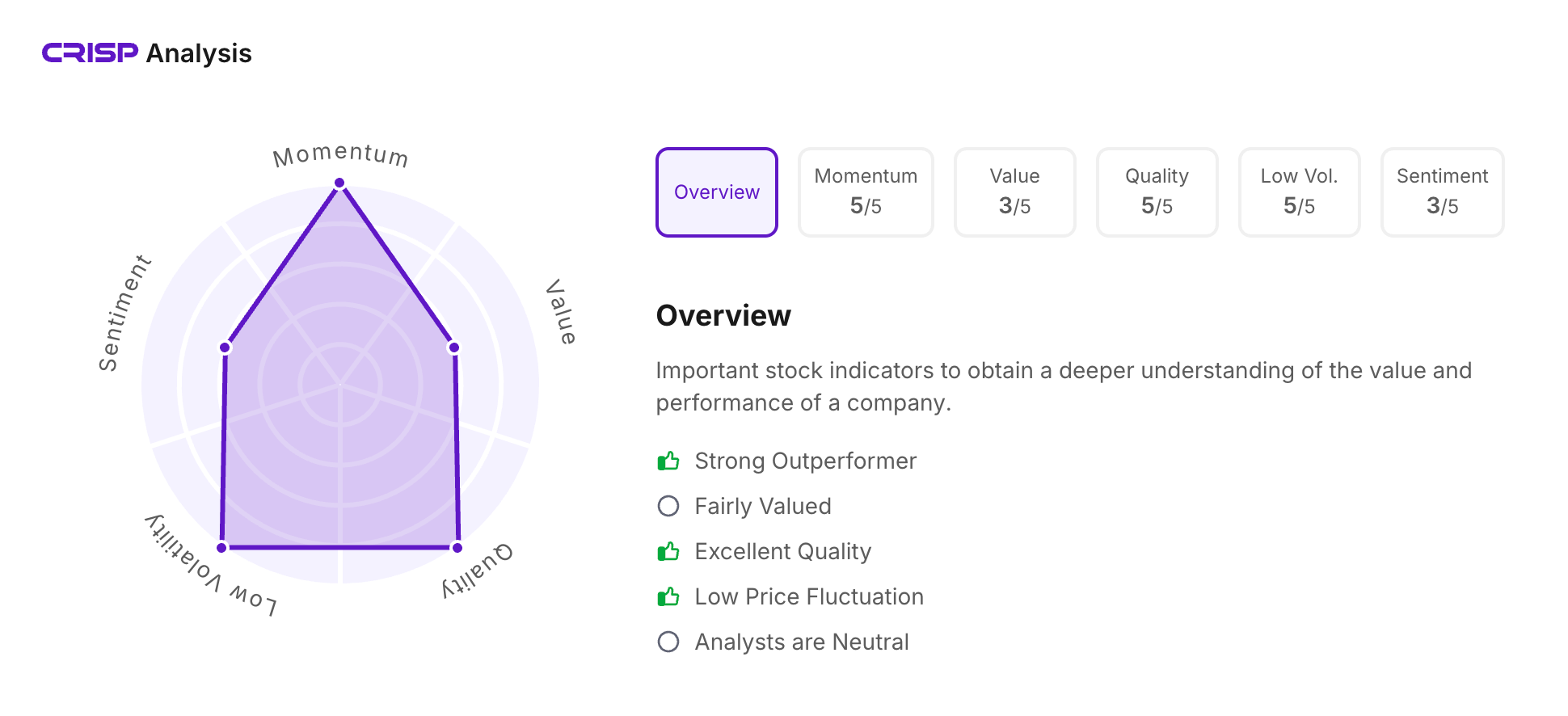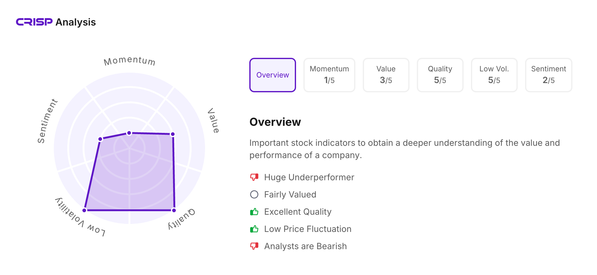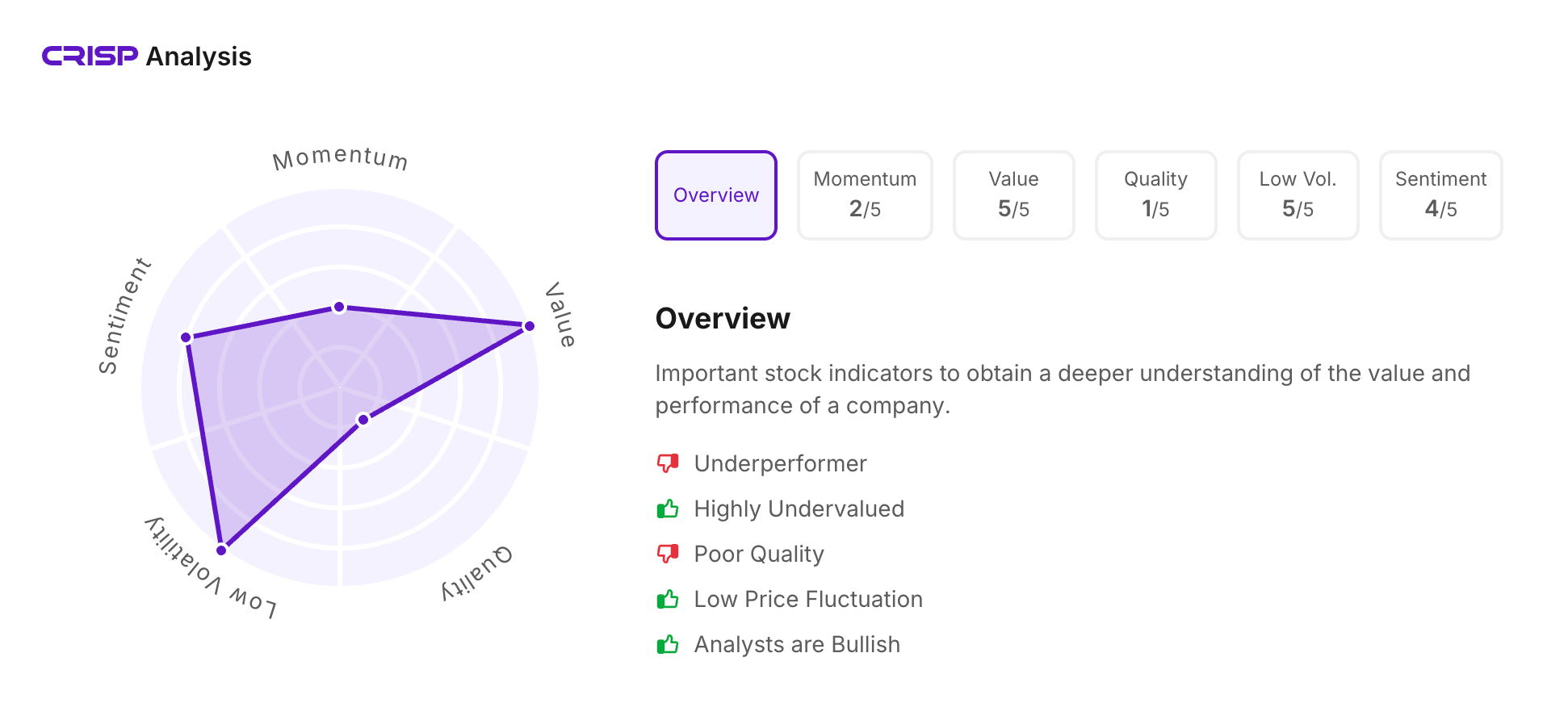 Let’s take a look at its CRISP Analysis scores: