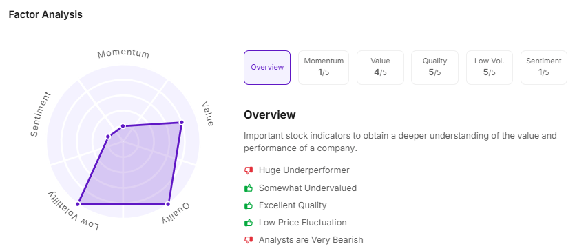 Let’s take a look at its factor analysis scores: