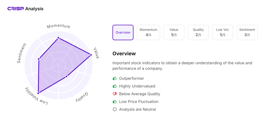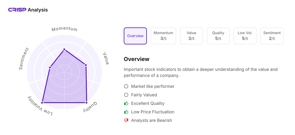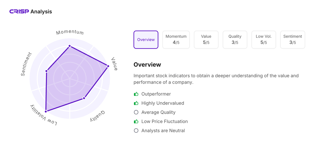 Let’s take a look at its CRISP Analysis scores: