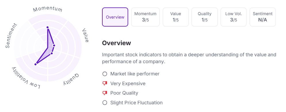 Over the last three and five years, this stock has delivered multibagger returns of more than 180% and 515%, respectively. Let’s take a look at its Factor Analysis scores: