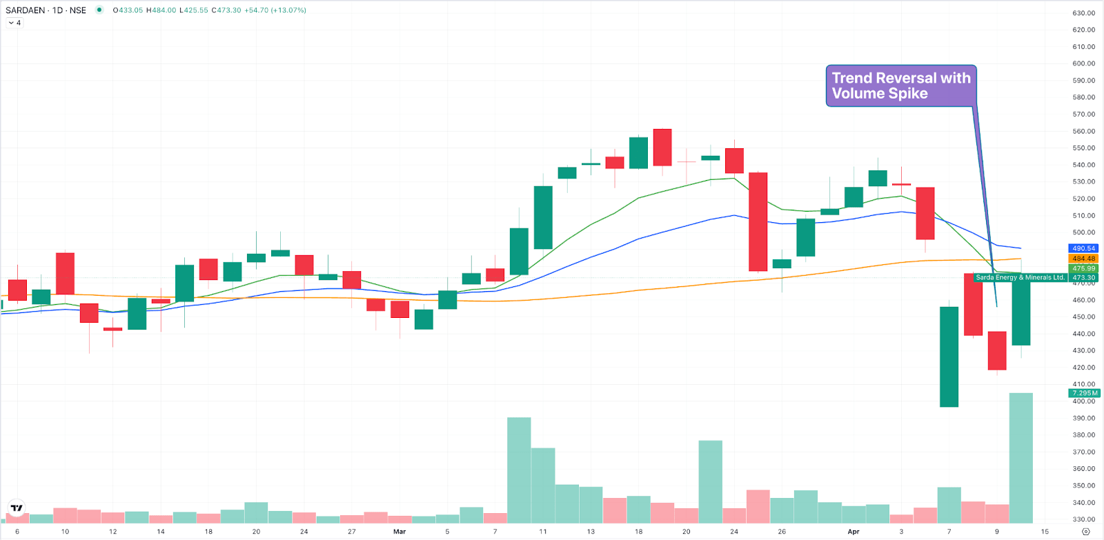 A notable trend reversal after five consecutive days of decline was observed. It opened with a gap-up of 3.94%, reaching an intraday high of ₹484. It will be interesting to see how the stock performs in the coming days.