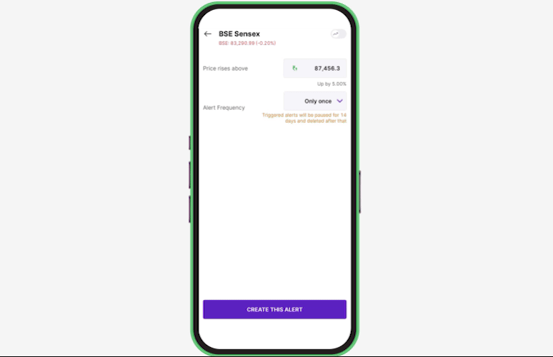 Alerts can be set for individual stocks, all F&O instruments, and major indices.