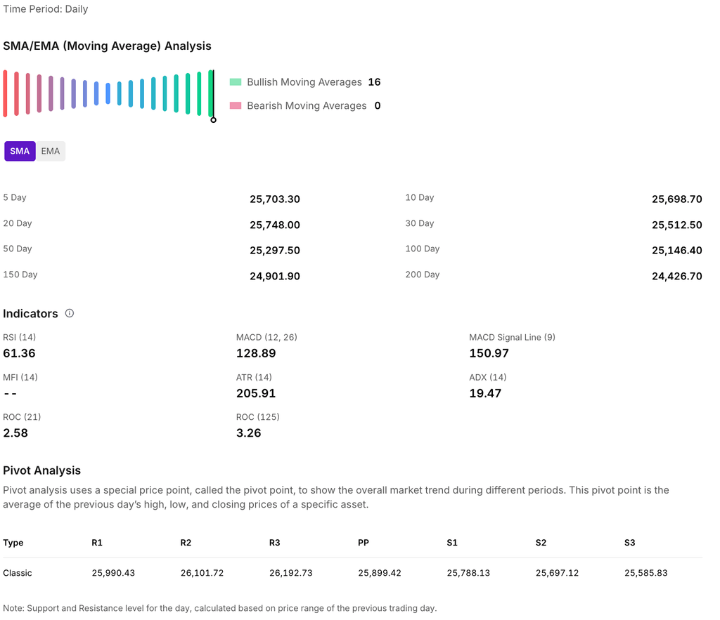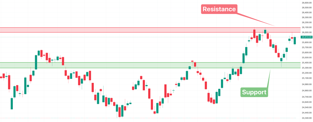 The Nifty 50 held strong this week, gaining 1.22% to close at 25,910.10. The index gained 312.6 points this week.