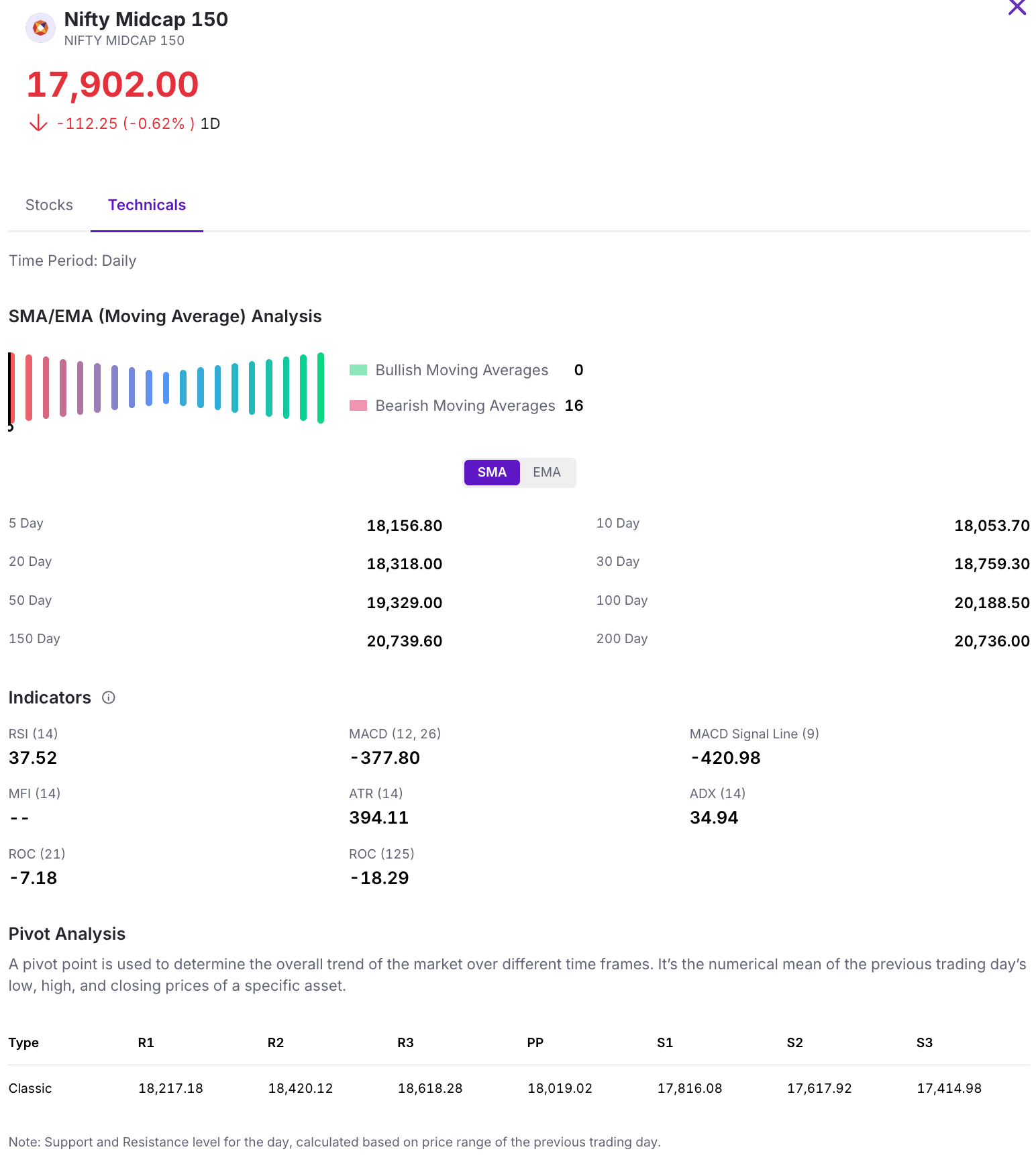 | Nifty Midcap 150 | 17,902.00 (+ 0.53%) |