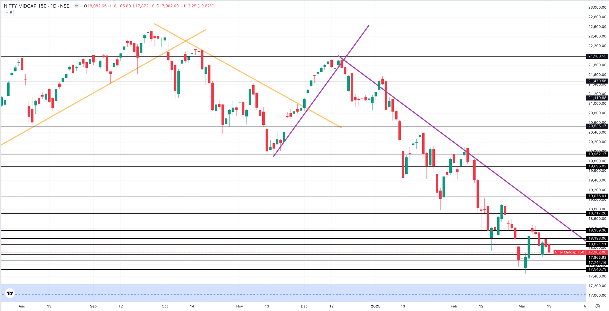 The Nifty Midcap 150 ended negatively this week, shredding around 439 points closing at 17,900 on Friday.