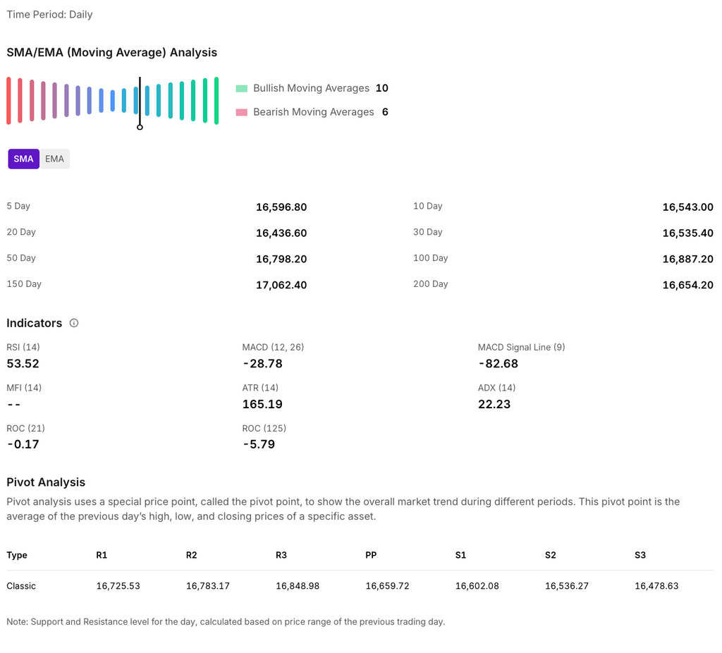 - Key Resistance Level: 16,700 – 16,900