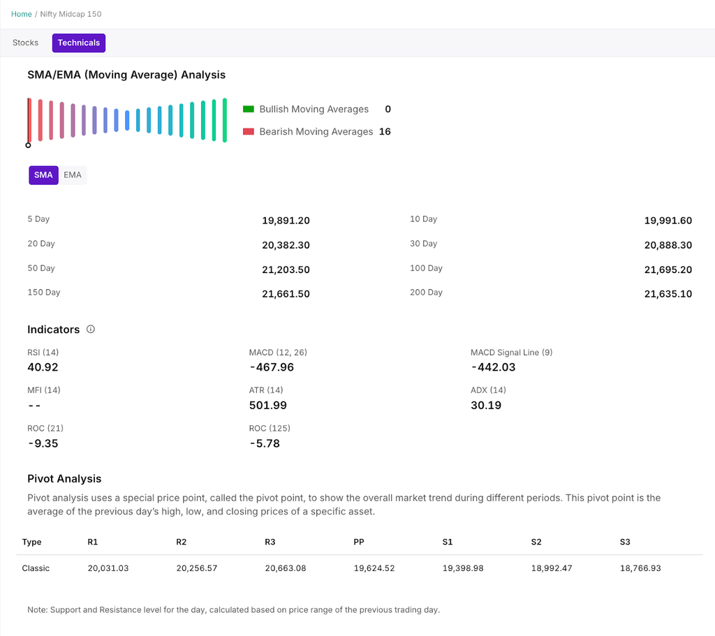 | Nifty Midcap 150 | 19,805.50 (🔻0.74%) |
