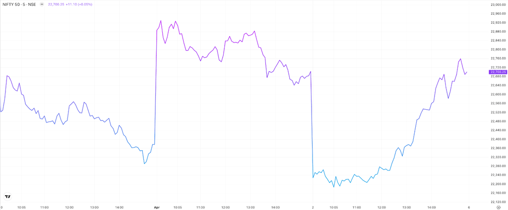 The Nifty 50 ended the week down by -0.47%, losing approximately -106.7 points to close at 22,713.1.
