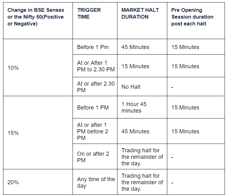 The length of a halt in India is determined by the degree of variation in the index value and the moment the index reaches that value. Earlier in this article, we discussed the specifics of market-wide circuit breakers in India. However, there is no fixed duration for the circuit to end when it comes to stocks.
